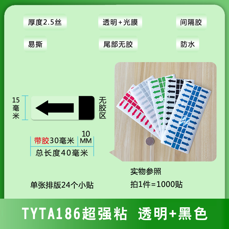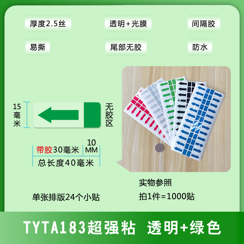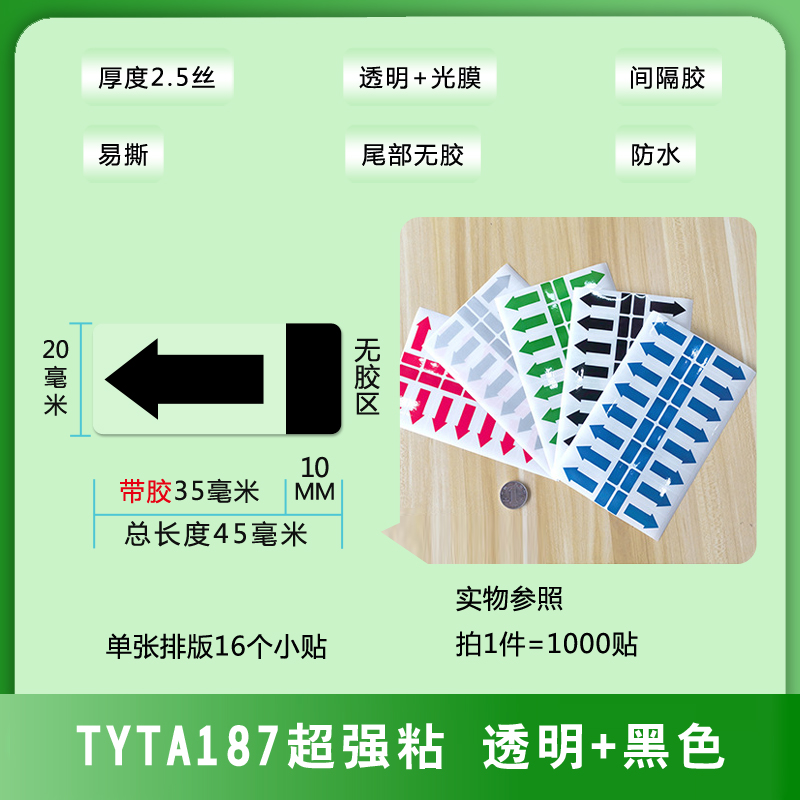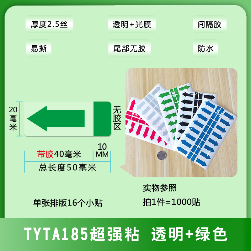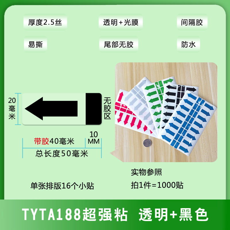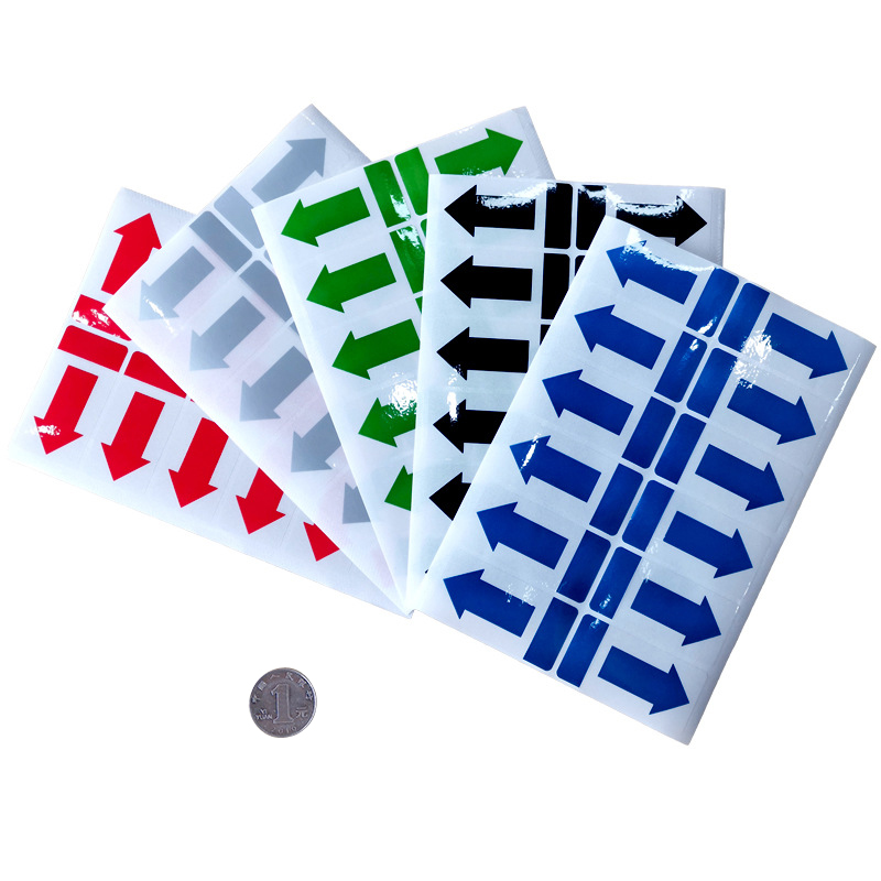 不干膠間隔封口貼箭頭方向標(biāo)簽易撕綠黑藍(lán)銀紅色透明PVC防水貼紙