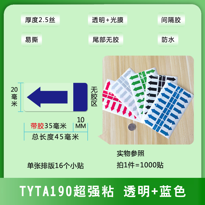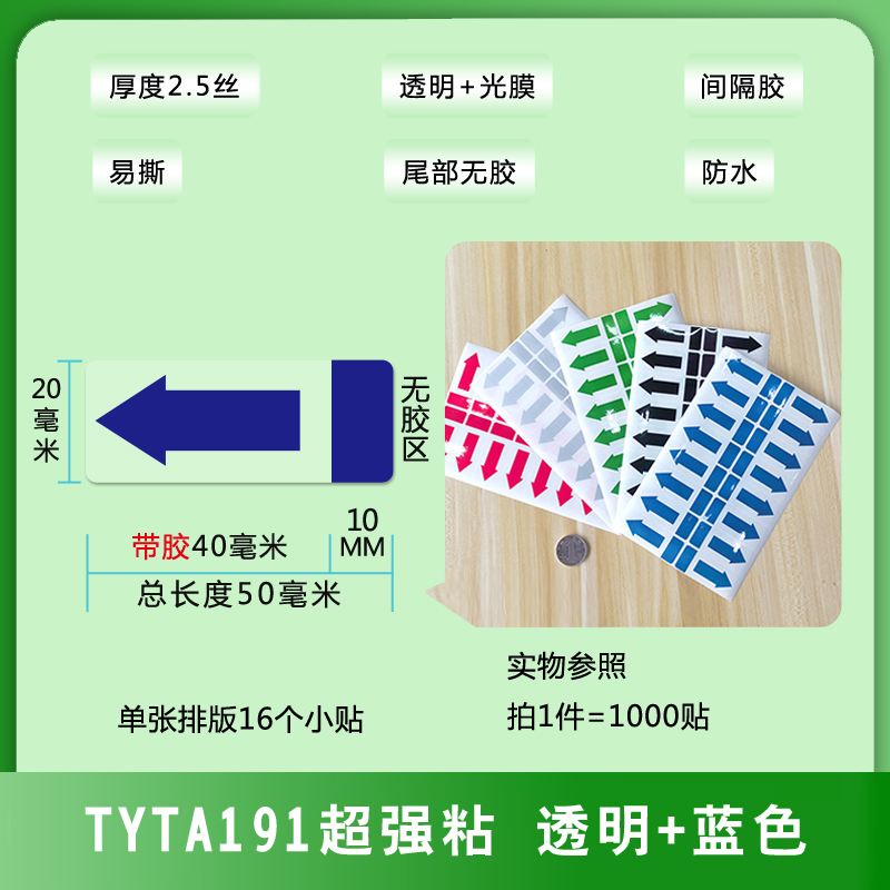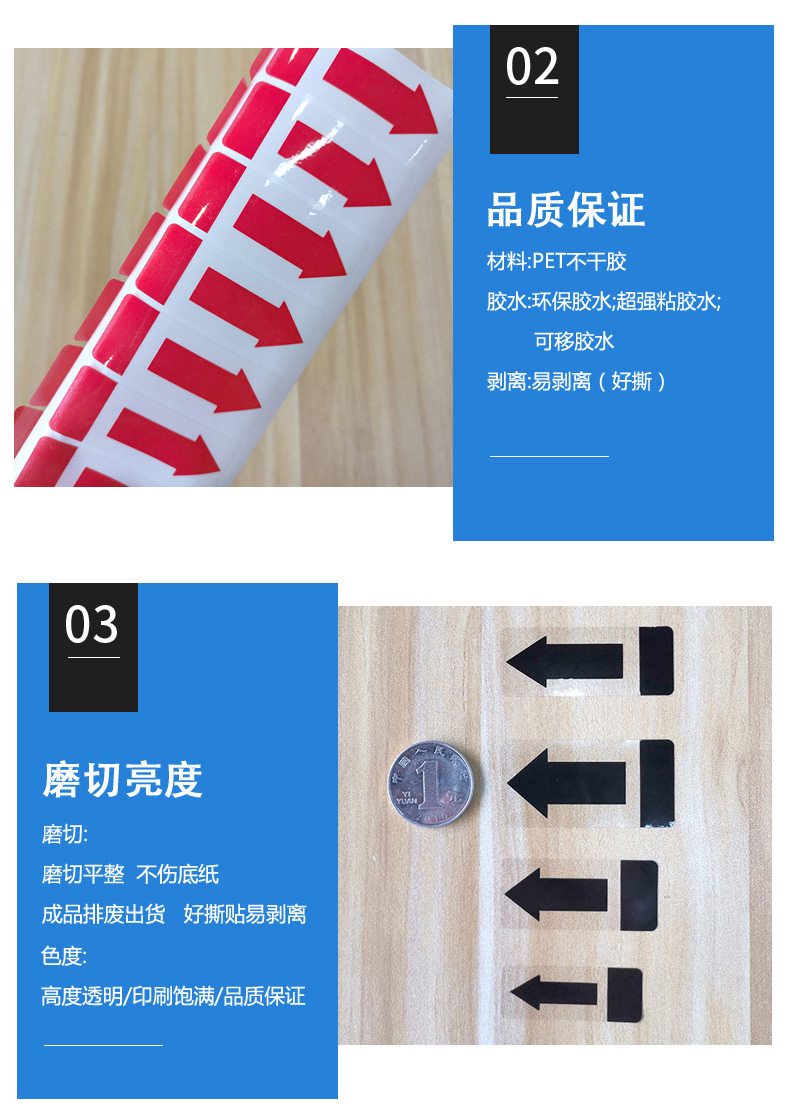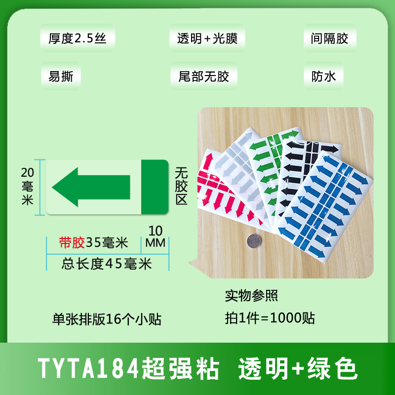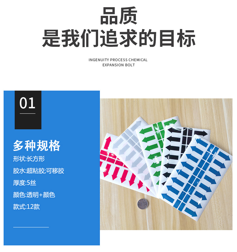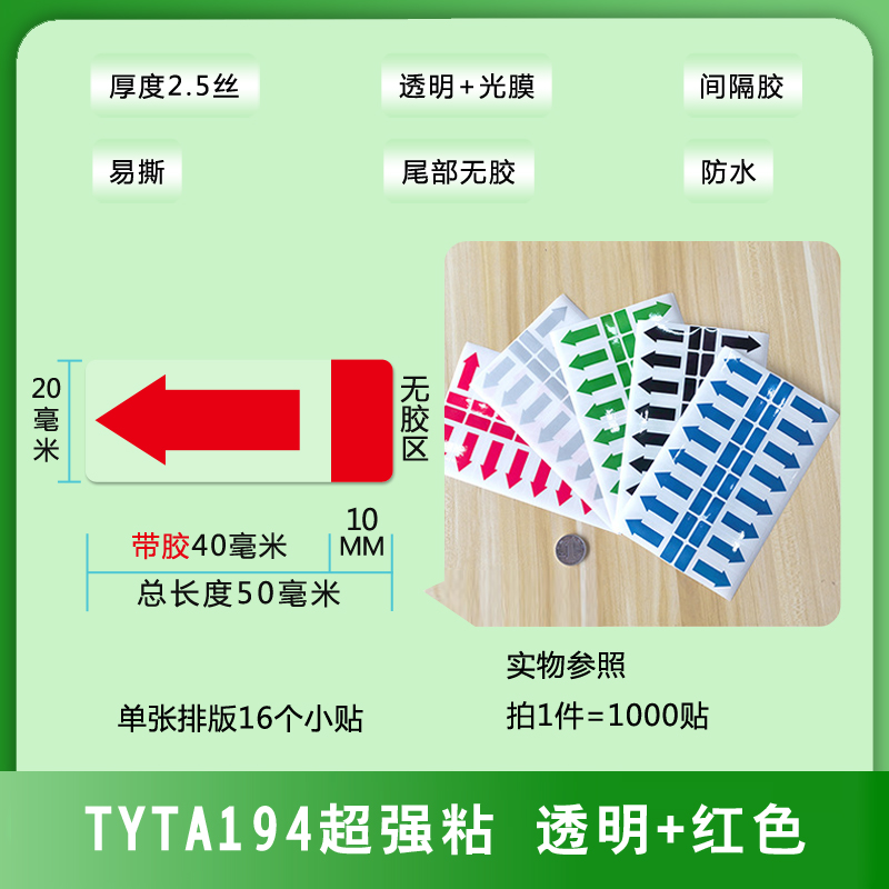 不干膠間隔封口貼箭頭方向標(biāo)簽易撕綠黑藍(lán)銀紅色透明PVC防水貼紙