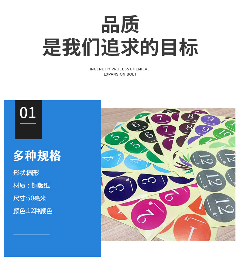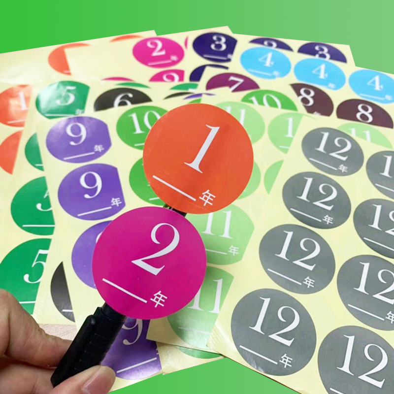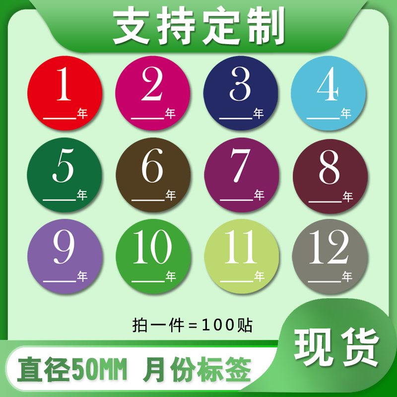 月份標(biāo)簽彩色銅版紙不干膠貼紙圓形12種顏色數(shù)字日期年份標(biāo)簽打印