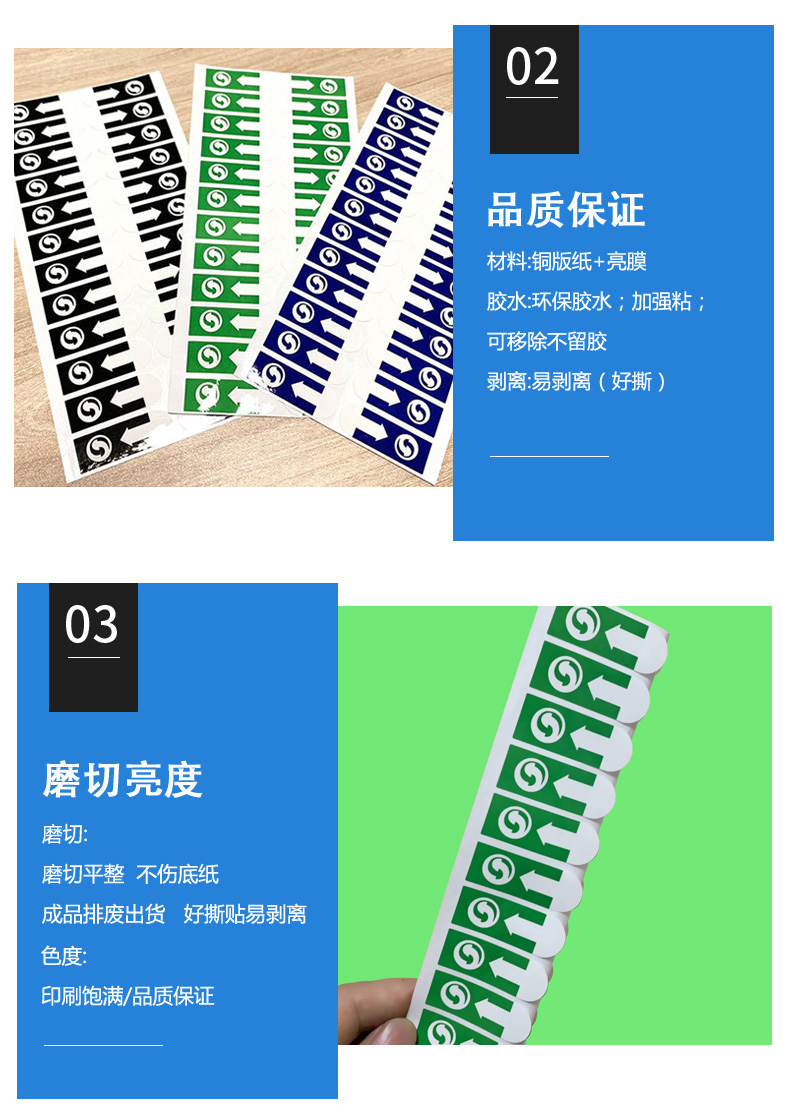 銅版紙貼紙箭頭標(biāo)簽可移除間隔膠易撕貼彩色垃圾袋封口貼logo印刷